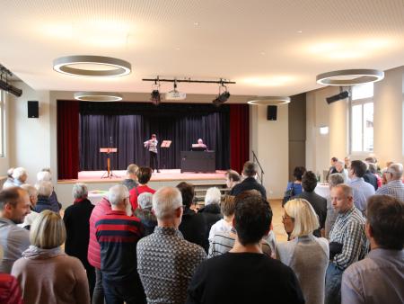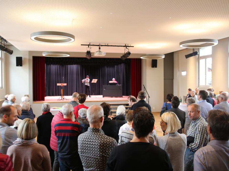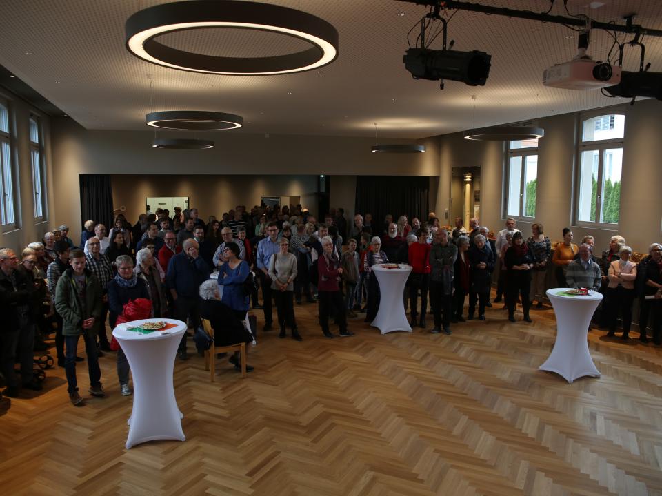 Die Apérogruppe unter der Leitung von Rosalie Wagner servierte darauf kleine gebackene Schlüssel und gemeinsam wurde auf das gelungene Werk angestossen. Als besonderer Leckerbissen wurden die 10 Monate der Sanierung durch Yanik Raas mit einer Zeitrafferkamera aufgezeichnet und so konnte der gesamte Umbau in gut 4 Minuten im Schnelldurchlauf bestaunt werden. Auch die Möglichkeit einer Besichtigung auf und unter der Bühne wurde rege genutzt.