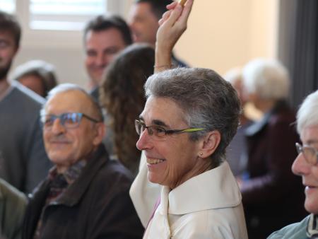 Kirchenpräsidentin Brigitte Del Prete durfte nach dem Gottesdienst eine grosse Zahl interessierter Besucher begrüssen. Nach einer musikalischen Eröffnungsmelodie von Roger Ruffieux am Piano und Marlies Ruffieux an der Querflöte unterstrich die Gemeindeleiterin Gabi Suhner die Bedeutung des katholischen Vereinshauses für das Pfarreileben. Sie betonte mit ihren Worten, dass ein solcher Raum alleine nichts nütze, sondern erst Leben erhalte, mit den Leuten welche ihn benutzen. Darum segnete sie im Anschluss nicht nur das Vereinshaus, sondern vor allem auch die anwesenden Gäste.