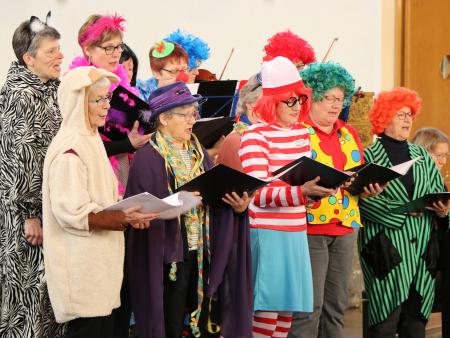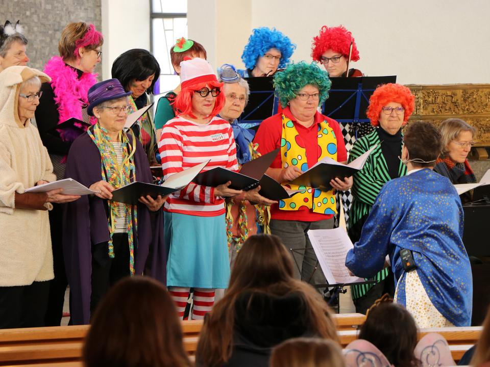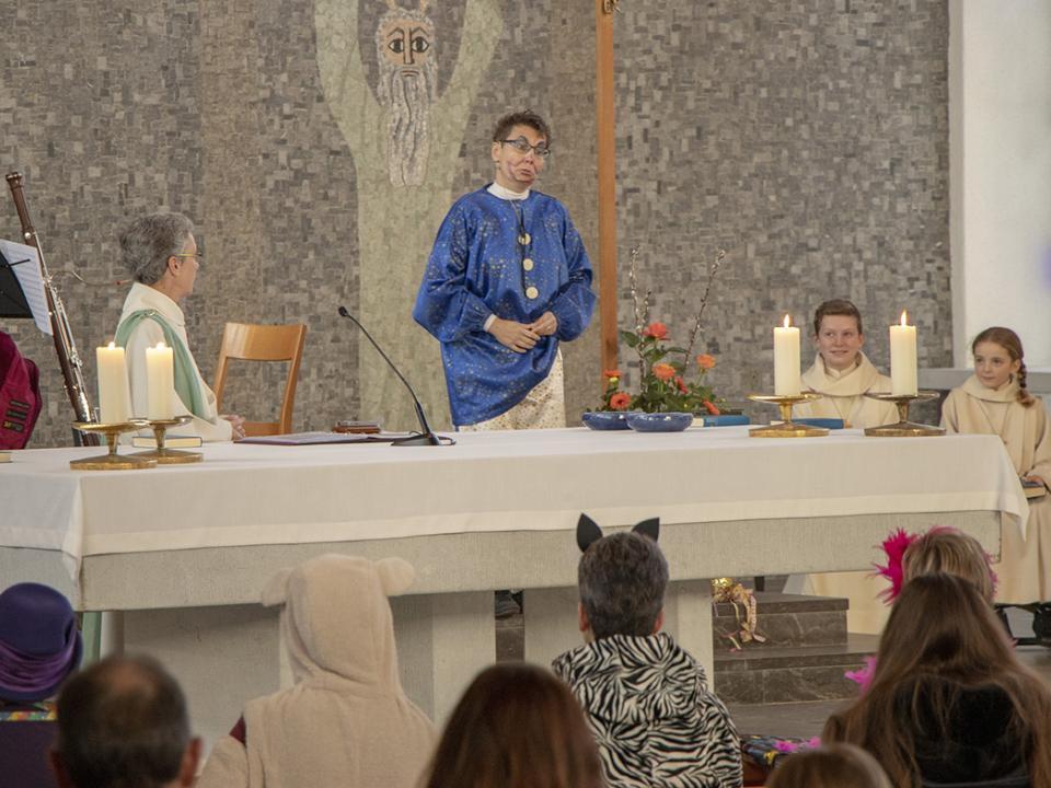 Die fünfte Jahreszeit oder die scheenschte Dääg im Johr feierten wir letzten Sonntag auch in Wängi während des Gottesdienstes. Die "Dumme Augustine" sowie das Bläserquintett Pentaphon und der Frauenprojektchor mit ihren Rythmen und Melodien gestalteten die Liturgie mit. Die dumme Augustine mit ihrem vorlauten Mundwerk verfolgte den Gottesdienst von Anfang an ganz genau und nahm alles sehr wörtlich. Damit Augustine einfach mal für einen kurzen Moment still war, versprach Gabi Suhner ihr, sie könne die Lesung übernehmen. Augustine führte diese Aufgabe gewissenhaft aus. Satz für Satz der Lesung wurde von ihr unter die Lupe genommen. Sie wollte es genau wissen. Gabi Suhner erklärte der dummen Augustine mit sehr viel Geduld, die Stellen in der Lesung, welche sie nicht wirklich so verstand wie sie geschrieben waren. Wenn wir ehrlich sind, profitierte nicht nur Augustine von der Erklärungen und Erläuterung von Gabi Suhner, sondern bestimmt auch der eine oder andere Gottesdienstbesucher. Mit einem Lächeln oder Schmunzeln wurde dadurch unser Beten beschwingter und befreiter. Dass in diesem Gottesdienst aber auch Momente der Stille und der Besinnung Platz hatten, verstand sich von selbst!