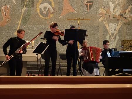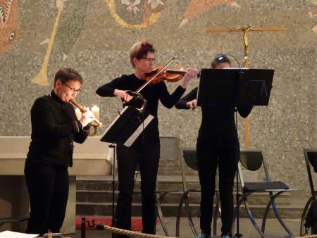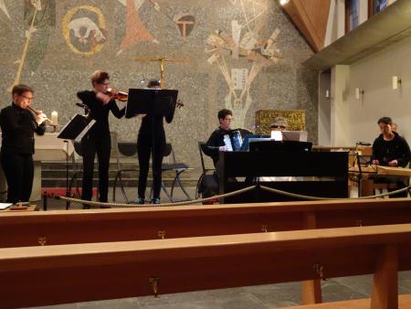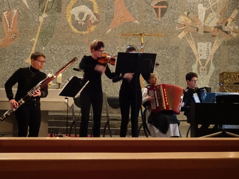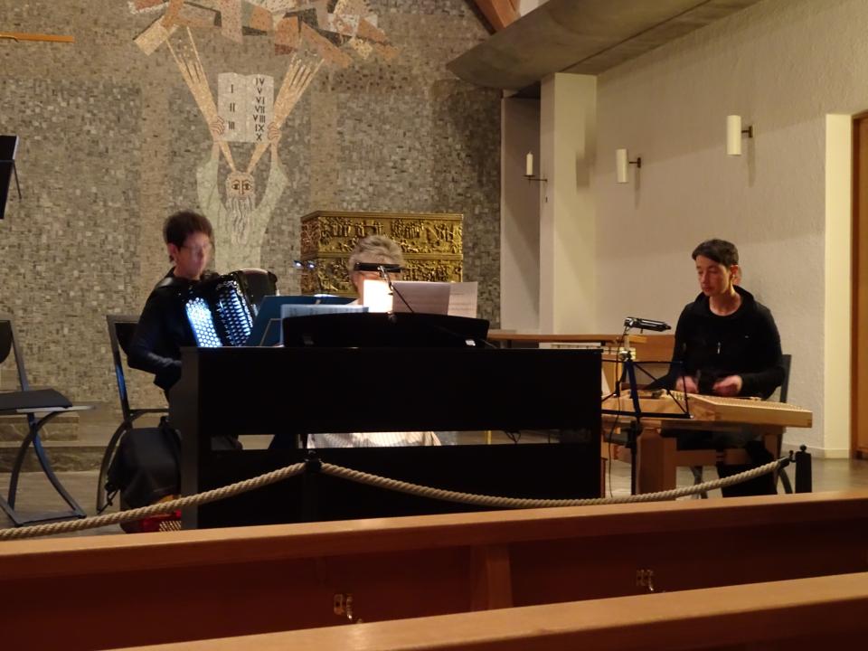 Die volkstümliche Klänge des Ad hoc Ensembles umrahmten die Freitagsbesinnung vom 29. März wunderbar. Frau Priska Störchli erzählte im Appenzellerdialekt eine Appenzeller Sage, welche das einfache, aber zufriedene Leben einer Familie wiederspiegelte mit all seinen Höhen und Tiefen.